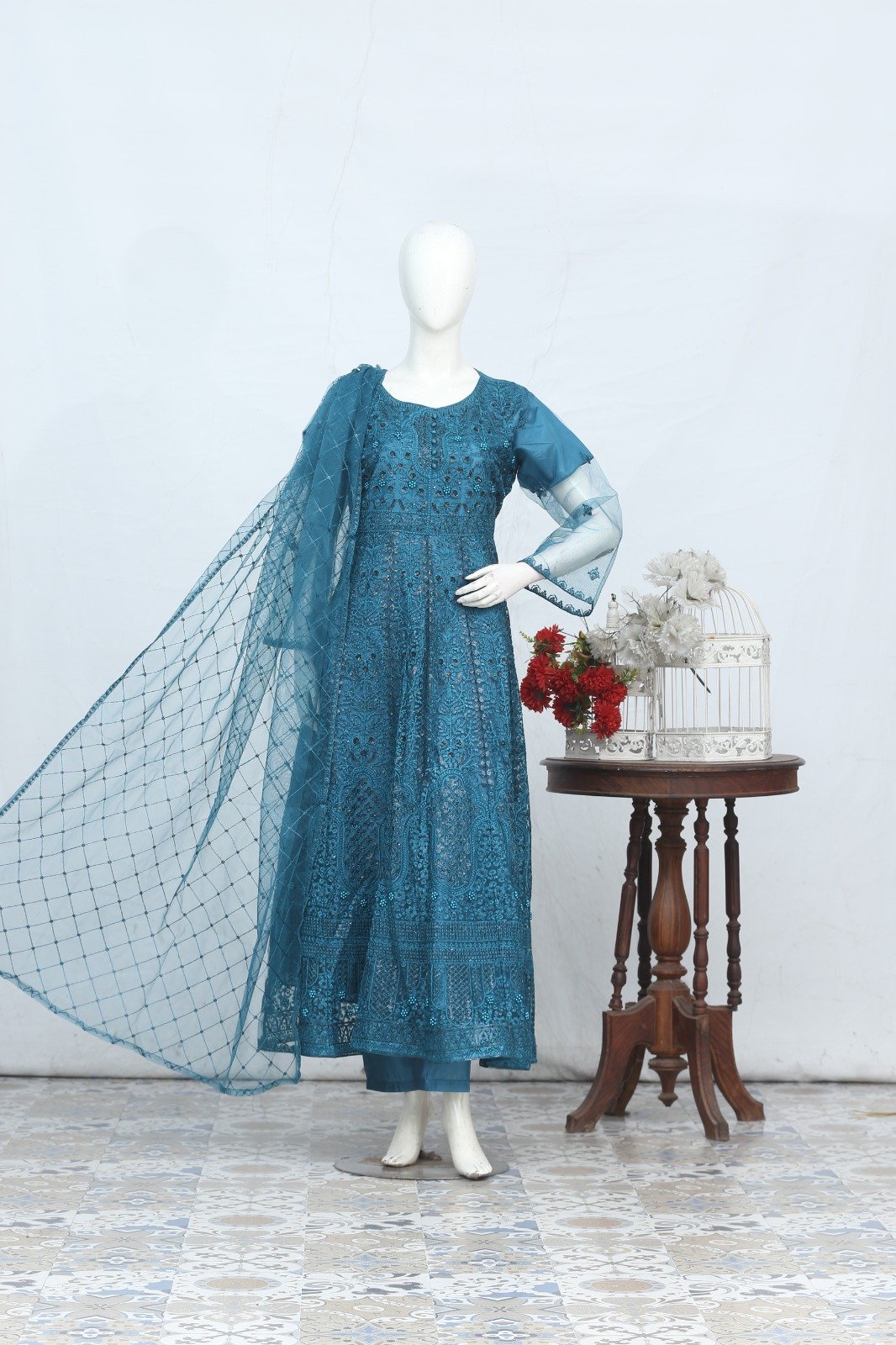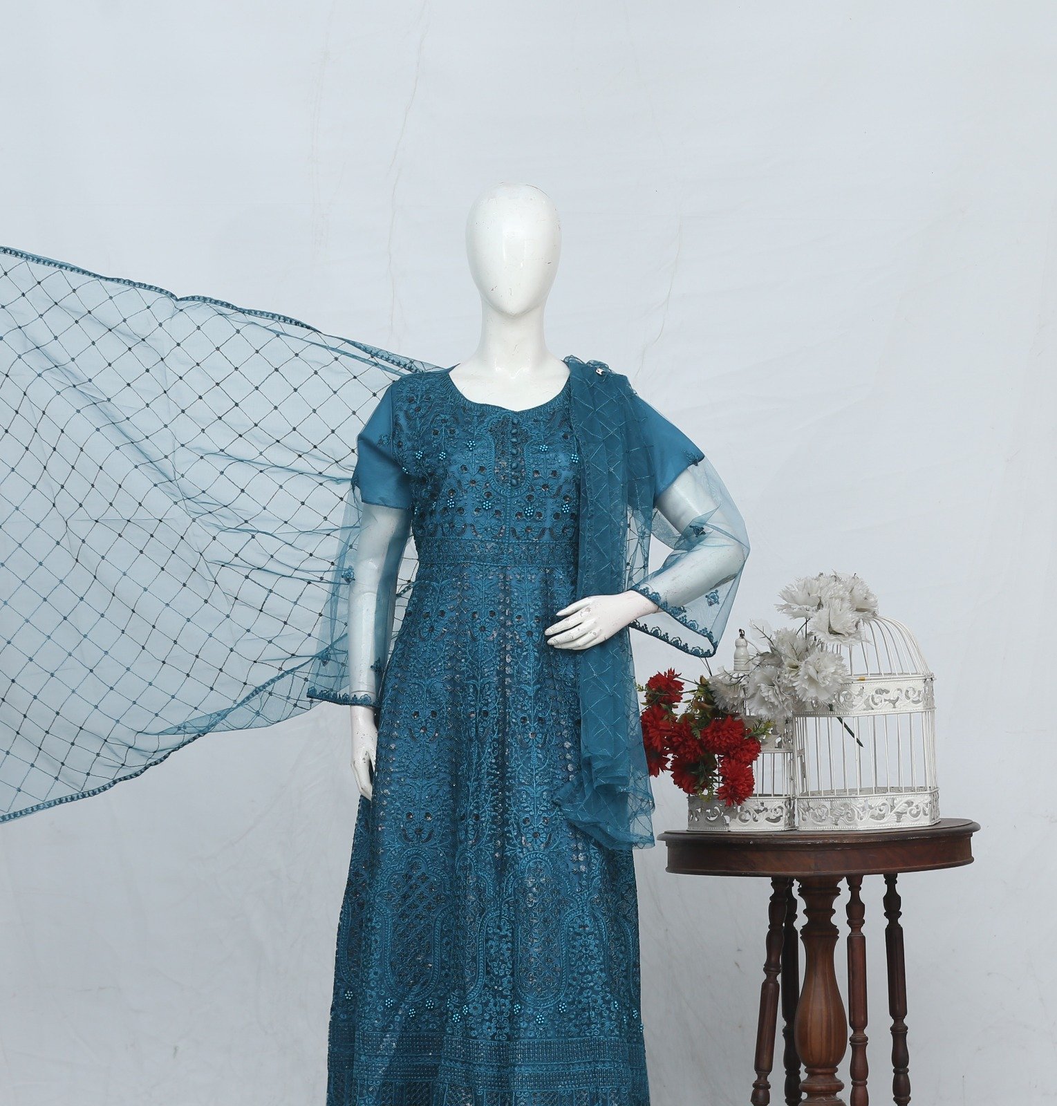 Step into timeless elegance with our Full-Length Slai Shuda Maxi, crafted from premium quality net fabric. Designed exclusively for weddings, receptions, and special occasions, this dress combines traditional charm with modern sophistication.