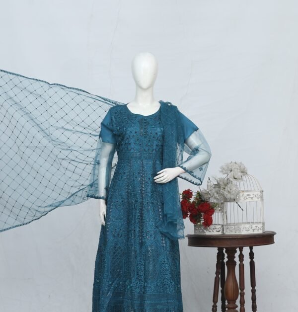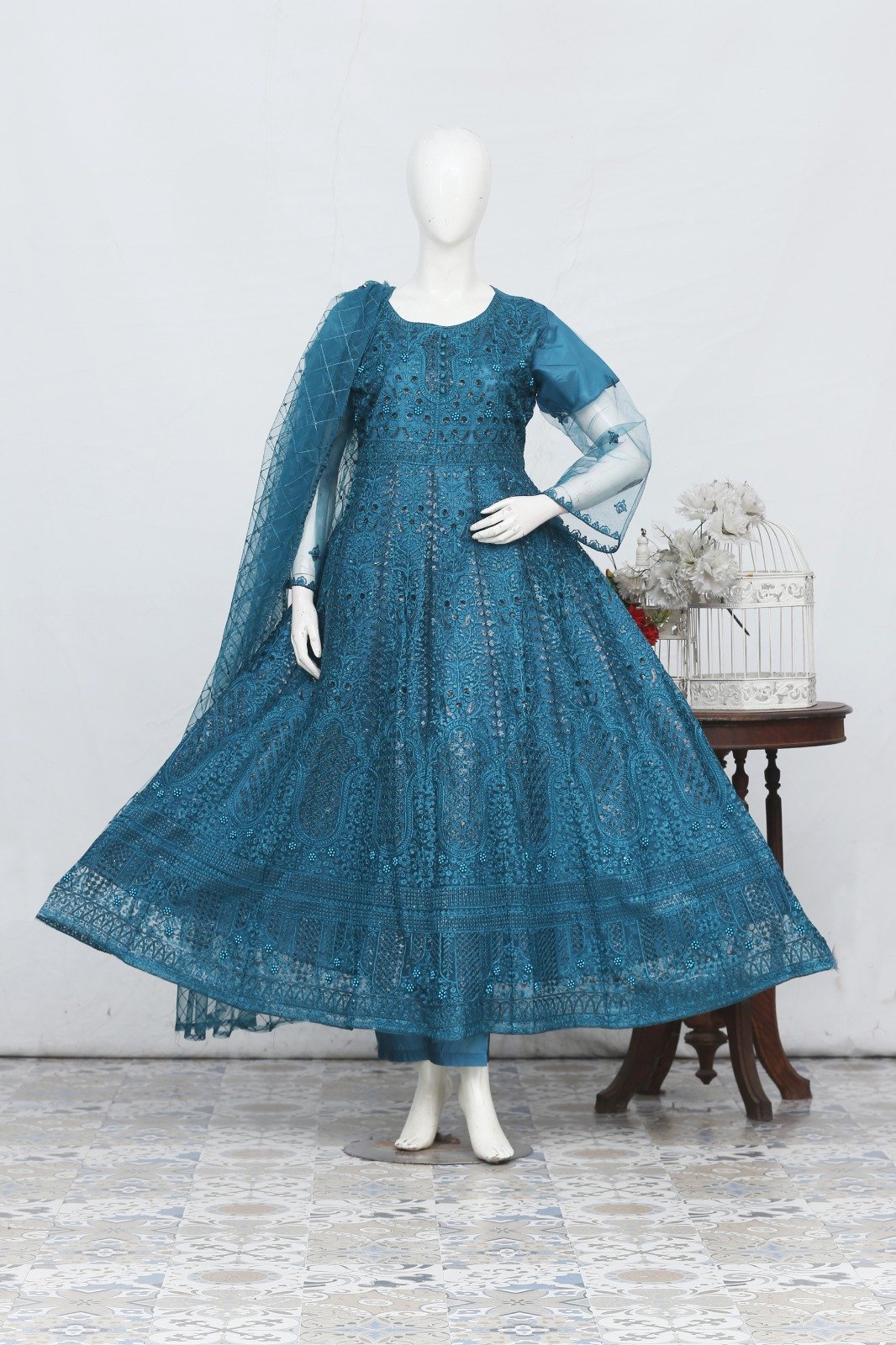 “Elegance in Every Thread – Full-Length Slai Shuda Net Gowns for Weddings & Celebrations”