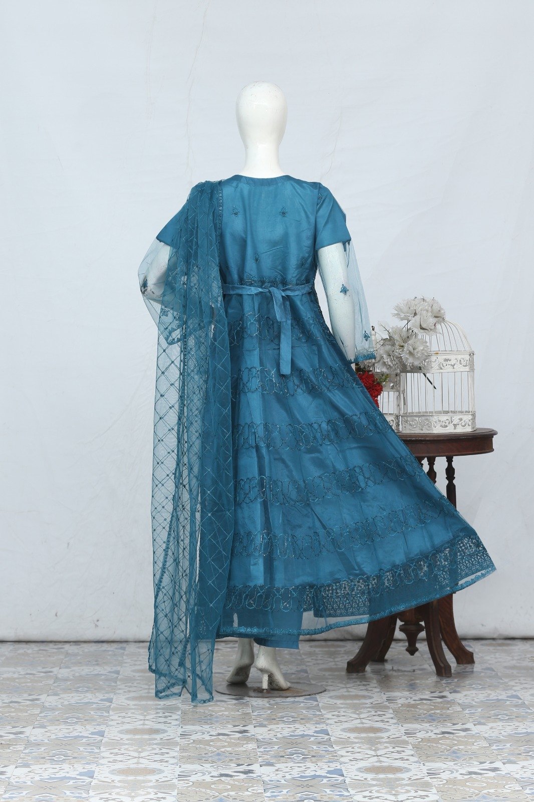 Here is a beautifully written product description in English, suitable for uploading on your WooCommerce WordPress website for a Full-Size Slai Shuda Net Fabric Dress (perfect for weddings, receptions, and parties):